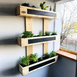 Jardinera Vertical desmontable, con 3 cubos para las plantas de 45x20cm con sistema de anclaje desmontable. Incluye 6 plantas para iniciar su huerta y 2 kilos de tierra de hojas. Tamaño 50x120 cm.